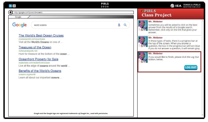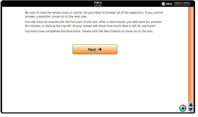 O TIMSS Mini-Player είναι στην Αγγλική γλώσσα και περιλαμβάνει την οθόνη εισόδου (login screen) και οδηγίες για τη συμπλήρωση του δοκιμίου αξιολόγησης.